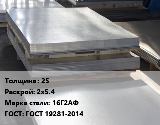 Лист горячекатаный 25 2х5.4 Сталь: 16Г2АФ ГОСТ: ГОСТ 19281-2014