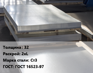 Лист горячекатаный 32 2хL Сталь: Ст3 ГОСТ: ГОСТ 16523-97