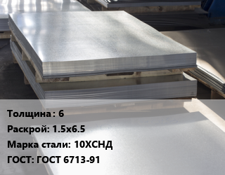 Лист горячекатаный 6 1.5х6.5 Сталь: 10ХСНД ГОСТ: ГОСТ 6713-91