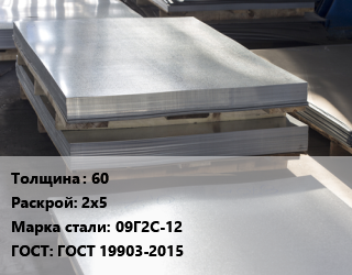 Лист горячекатаный 60 2х5 Сталь: 09Г2С-12 ГОСТ: ГОСТ 19903-2015
