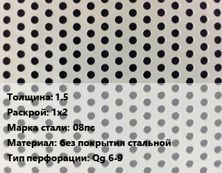 Лист перфорированный 1.5 1х2 Марка: 08пс без покрытия стальной Qg 6-9