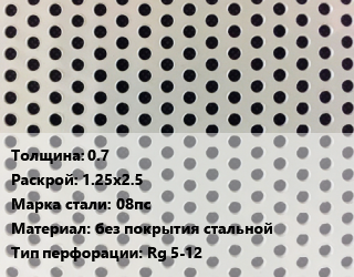 Лист перфорированный 0.7 1.25х2.5 Марка: 08пс без покрытия стальной Rg 5-12