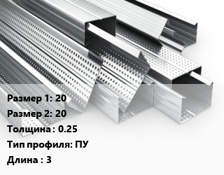 Гнутый профиль 20х20 s=0.25 ПУ L=3, шт, угловой перфорированный цена от 35.55 Р / шт, где купить, условия доставки в Могилеве и Могилёвской области