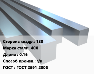 Квадрат стальной 130 Сталь: 40Х L=0.16 г/к ГОСТ 2591-2006