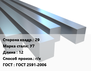 Квадрат стальной 29 Сталь: У7 L=12 г/к ГОСТ 2591-2006