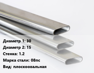 Труба плоскоовальная 30х15 s=1.2 Сталь: 08пс плоскоовальная