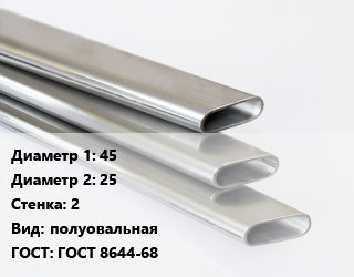 Труба плоскоовальная 45х25 s=2 полуовальная ГОСТ: ГОСТ 8644-68