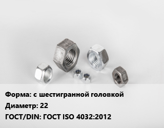 Гайка с шестигранной головкой D=22 ГОСТ ISO 4032:2012