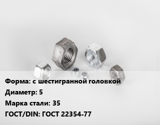 Гайка с шестигранной головкой D=5 Сталь: 35 ГОСТ 22354-77