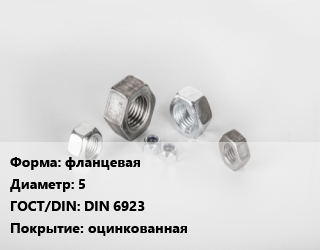 Гайка фланцевая D=5 DIN 6923 оцинкованная