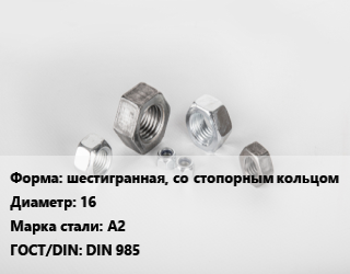 Гайка шестигранная, со стопорным кольцом D=16 Сталь: А2 DIN 985, кг цена от 163.69 Р / кг, где купить, условия доставки в Могилеве и Могилёвской области