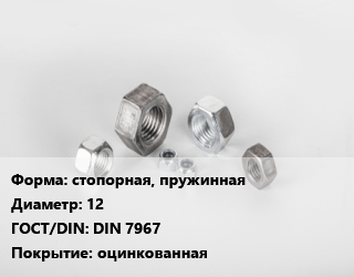 Гайка стопорная, пружинная D=12 DIN 7967 оцинкованная, шт цена от 21.6 Р / кг, где купить, условия доставки в Могилеве и Могилёвской области