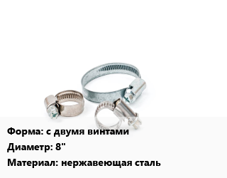 Хомут с двумя винтами D=8" нержавеющая сталь, шт, по запросу цена от 245.4 Р / шт, где купить, условия доставки в Могилеве и Могилёвской области
