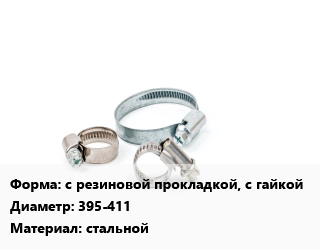 Хомут с резиновой прокладкой, с гайкой D=395-411 стальной, упаковка цена от 349 Р / шт, где купить, условия доставки в Могилеве и Могилёвской области