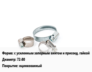 Хомут с усиленным запорным винтом и присоед. гайкой D=72-80 оцинкованный, упаковка 50 шт цена от 3 429 Р / шт, где купить, условия доставки в Могилеве и Могилёвской области