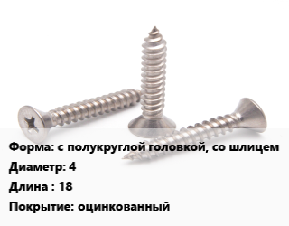 Саморез с полукруглой головкой, со шлицем D=4 L=18 оцинкованный, упаковка 100 шт цена от 241.2 Р / кг, где купить, условия доставки в Могилеве и Могилёвской области