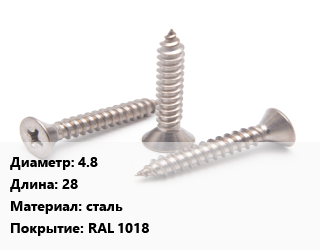 Саморез 4.8 L=28 сталь RAL 1018, шт, для кровельных материалов цена от 2.47 Р / кг, где купить, условия доставки в Могилеве и Могилёвской области