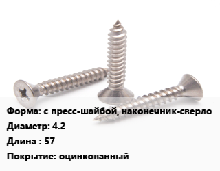 Саморез с пресс-шайбой, наконечник-сверло D=4.2 L=57 оцинкованный