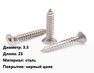 Саморез 3.5 L=25 сталь черный цинк, шт, для гипсокартона, по дереву цена По запросу где купить, условия доставки в Могилеве и Могилёвской области