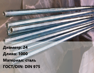Шпилька стальная 24 L=1000 сталь ГОСТ: DIN 975