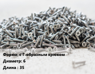 Шуруп с Г-образным крюком 6х35 сталь оцинкованный, упаковка 100 шт, Китай цена от 175.73 Р / кг, где купить, условия доставки в Могилеве и Могилёвской области