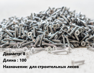 Шуруп 8х100 для строительных лесов, упаковка 1000 шт цена от 28 368 Р / кг, где купить, условия доставки в Могилеве и Могилёвской области