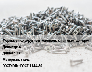 Шуруп с полукруглой головкой, с прямым шлицем 4х13 сталь ГОСТ: ГОСТ 1144-80
