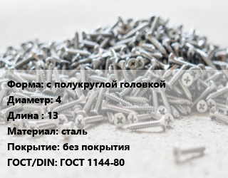 Шуруп с полукруглой головкой 4х13 сталь без покрытия ГОСТ: ГОСТ 1144-80