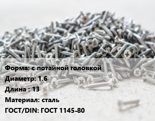 Шуруп с потайной головкой 1.6х13 сталь ГОСТ: ГОСТ 1145-80
