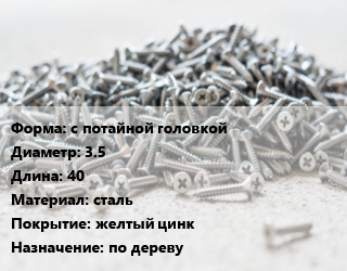 Шуруп с потайной головкой 3.5х40 сталь желтый цинк по дереву, упаковка цена от 4 645 Р / кг, где купить, условия доставки в Могилеве и Могилёвской области