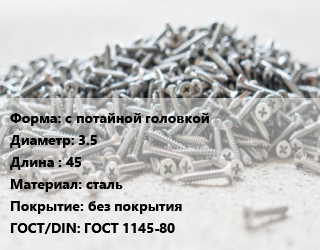 Шуруп с потайной головкой 3.5х45 сталь без покрытия ГОСТ: ГОСТ 1145-80