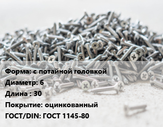 Шуруп с потайной головкой 6х30 оцинкованный ГОСТ: ГОСТ 1145-80