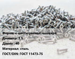 Шуруп с шестигранной головкой 3.5х40 сталь ГОСТ: ГОСТ 11473-75, кг, по запросу цена от 351.6 Р / кг, где купить, условия доставки в Могилеве и Могилёвской области