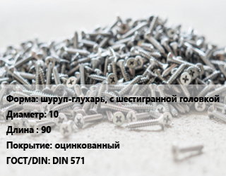 Шуруп шуруп-глухарь, с шестигранной головкой 10х90 оцинкованный ГОСТ: DIN 571