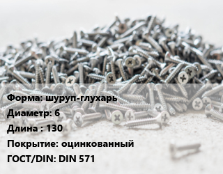 Шуруп шуруп-глухарь 6х130 оцинкованный ГОСТ: DIN 571