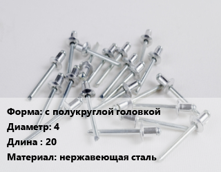 Заклепка с полукруглой головкой 4х20 нержавеющая сталь, шт цена от 58.46 Р / шт, где купить, условия доставки в Могилеве и Могилёвской области