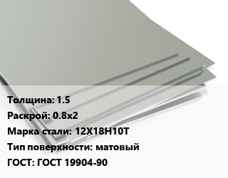 Лист нержавеющий 1.5 0.8х2 Сталь: 12Х18Н10Т Тип:матовый ГОСТ 19904-90