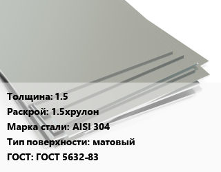 Лист нержавеющий 1.5 1.5хрулон Сталь: AISI 304 Тип:матовый ГОСТ 5632-83