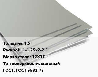 Лист нержавеющий 1.5 1-1.25х2-2.5 Сталь: 12Х17 Тип:матовый ГОСТ 5582-75