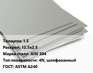 Лист нержавеющий 1.5 12.5х2.5 Сталь: AISI 304 Тип:4N, шлифованный ASTM A240