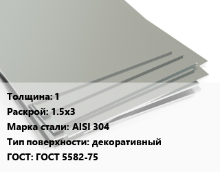 Лист нержавеющий 1 1.5х3 Сталь: AISI 304 Тип:декоративный ГОСТ 5582-75, шт цена от 14 588 Р / т, где купить, условия доставки в Могилеве и Могилёвской области