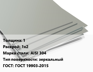 Лист нержавеющий 1 1х2 Сталь: AISI 304 Тип:зеркальный ГОСТ 19903-2015