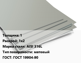 Лист нержавеющий 1 1х2 Сталь: AISI 316L Тип:матовый ГОСТ 19904-90, шт, х/к цена от 18 564 Р / т, где купить, условия доставки в Могилеве и Могилёвской области