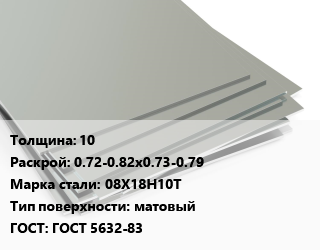 Лист нержавеющий 10 0.72-0.82х0.73-0.79 Сталь: 08Х18Н10Т Тип:матовый ГОСТ 5632-83
