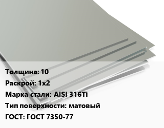 Лист нержавеющий 10 1х2 Сталь: AISI 316Ti Тип:матовый ГОСТ 7350-77, г/к, по запросу цена от 526 864 Р / т, где купить, условия доставки в Могилеве и Могилёвской области