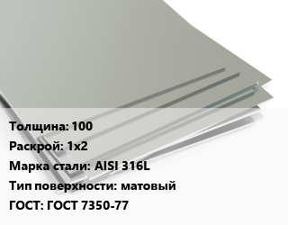 Лист нержавеющий 100 1х2 Сталь: AISI 316L Тип:матовый ГОСТ 7350-77