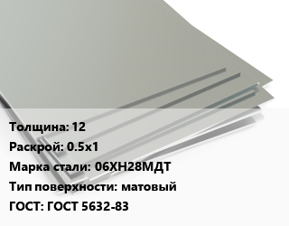 Лист нержавеющий 12 0.5х1 Сталь: 06ХН28МДТ Тип:матовый ГОСТ 5632-83