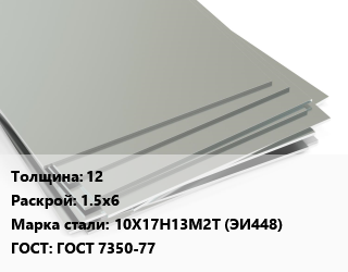 Лист нержавеющий 12 1.5х6 Сталь: 10Х17Н13М2Т (ЭИ448) ГОСТ 7350-77