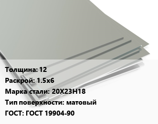 Лист нержавеющий 12 1.5х6 Сталь: 20Х23Н18 Тип:матовый ГОСТ 19904-90