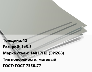 Лист нержавеющий 12 1х3.5 Сталь: 14Х17Н2 (ЭИ268) Тип:матовый ГОСТ 7350-77